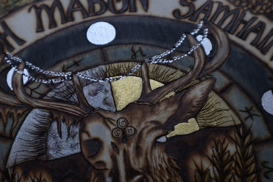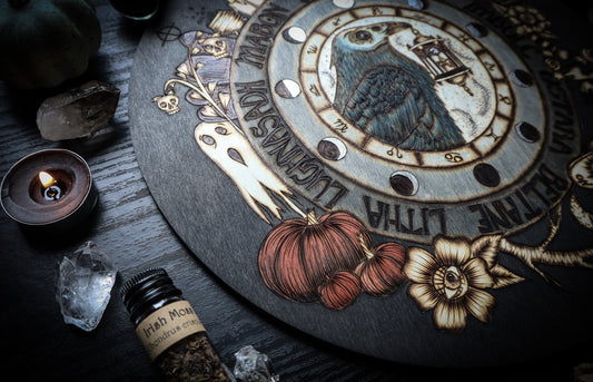 Wheel of The Year, Samhain Halloween Witchy, Wiccan Wall Art Pagan Home Altar Decor with ghosties and mushrooms