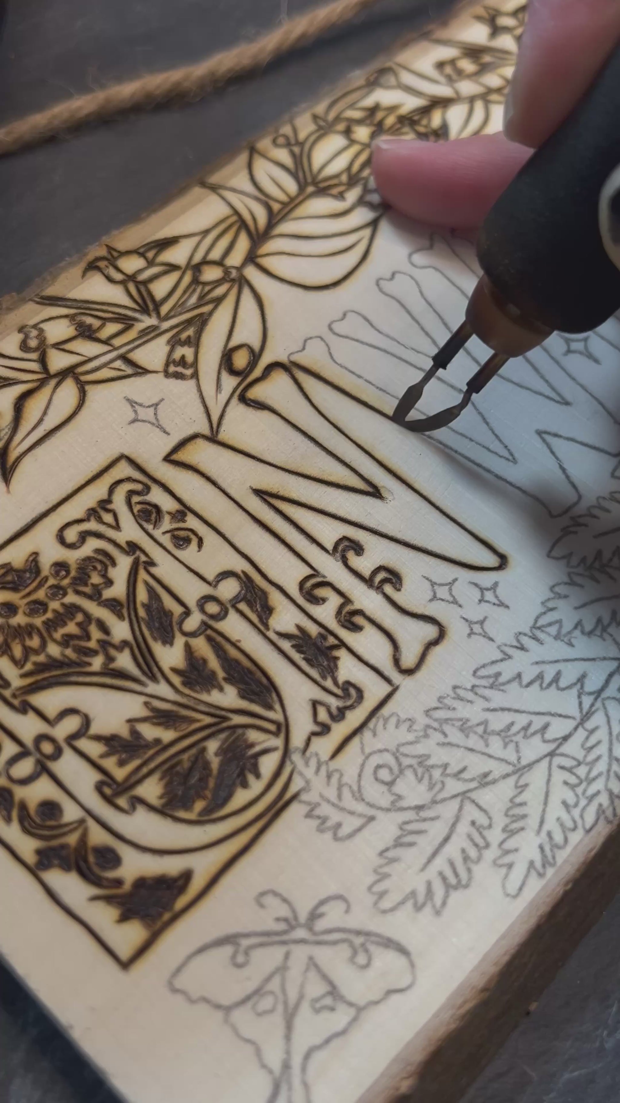 Keep unwanted guests away with this medieval inspired Woodburned door sign with “Unwelcome” lettering, Belladonna, flowers, ferns, and moths. This sign is Smokecrafted in Suffolk, England where it measures 25cm long snd 11cm wide, and includes a rope for hanging onto door or wall. This item is made to order and includes hand painted details, as well as sparkle accents.
